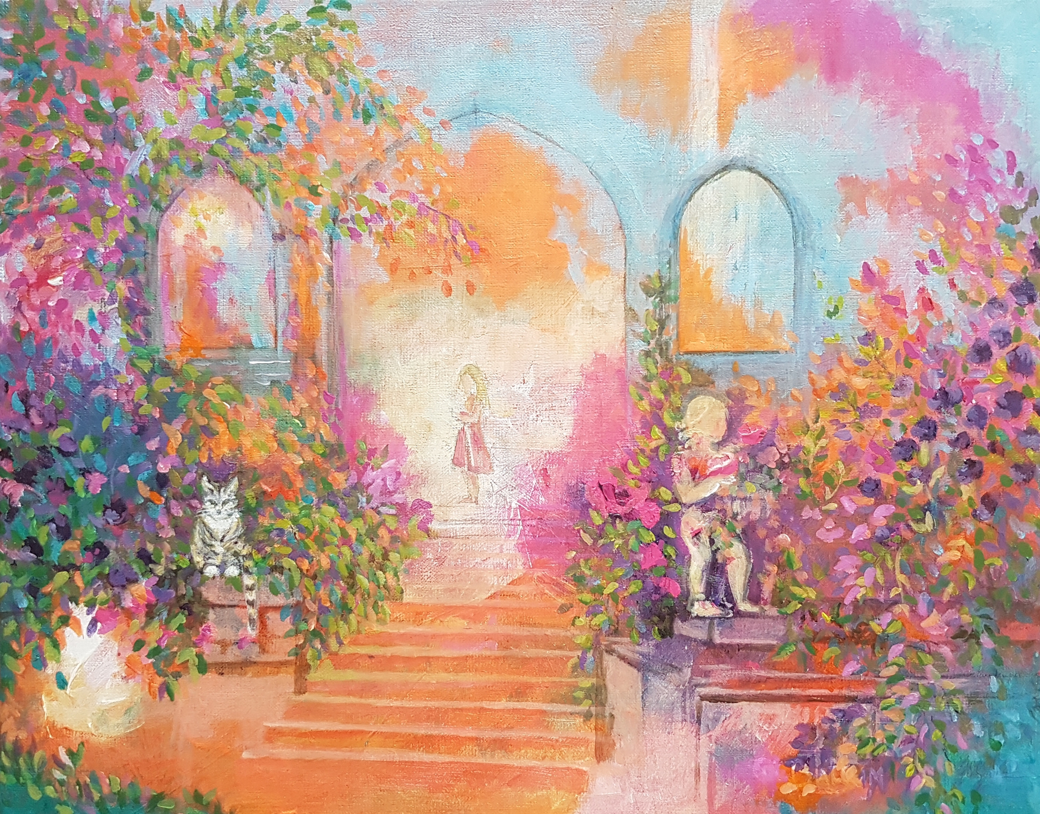 2013-2025schilderijen met spirituele afbeeldingen, o.a. dromerige landschappen, afbeeldingen waarin dieren, elfen en engelen kunnen voorkomen. Ook kan de afbeelding abstract zijn.