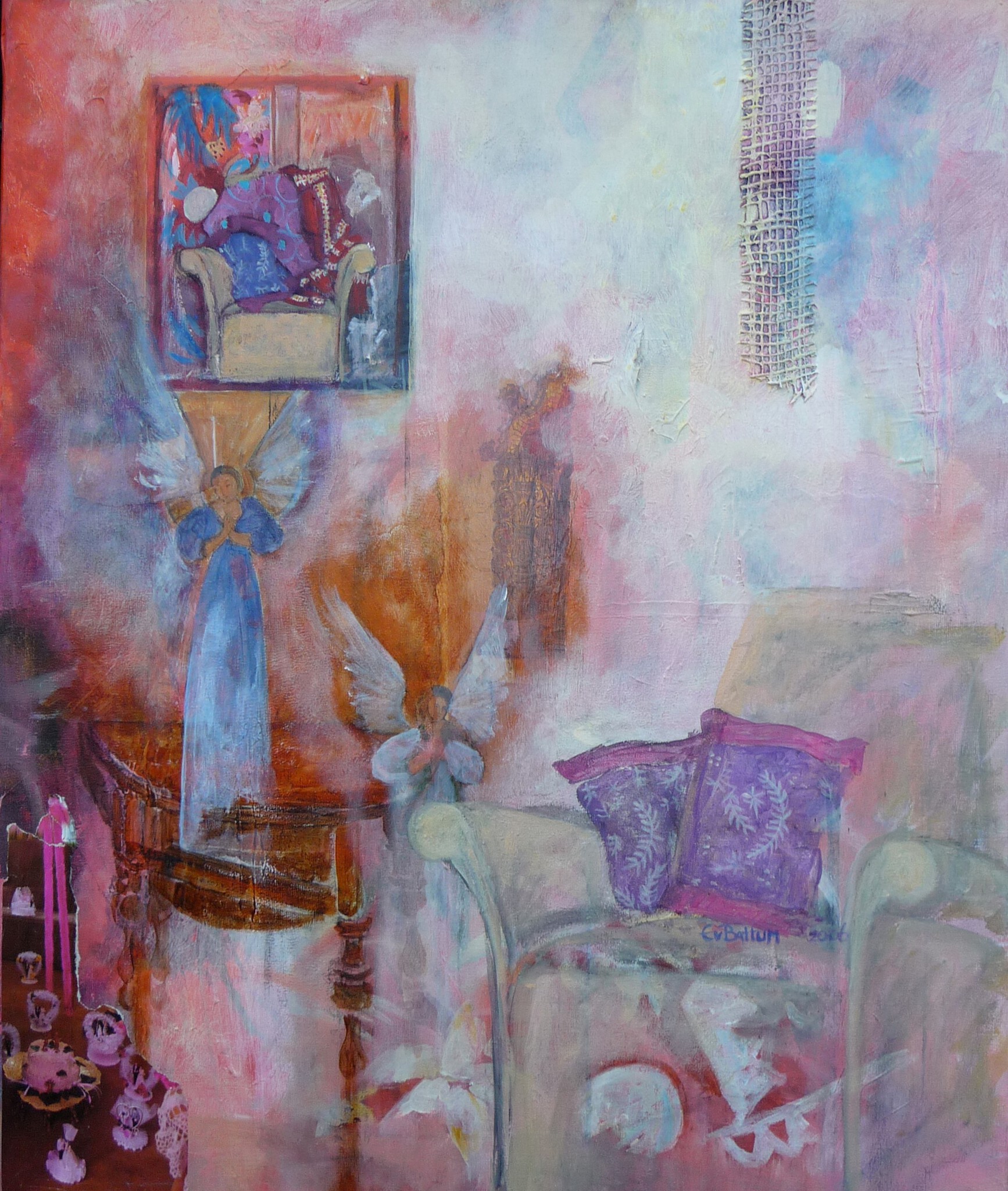 2013-2025schilderijen met spirituele afbeeldingen, o.a. dromerige landschappen, afbeeldingen waarin dieren, elfen en engelen kunnen voorkomen. Ook kan de afbeelding abstract zijn.